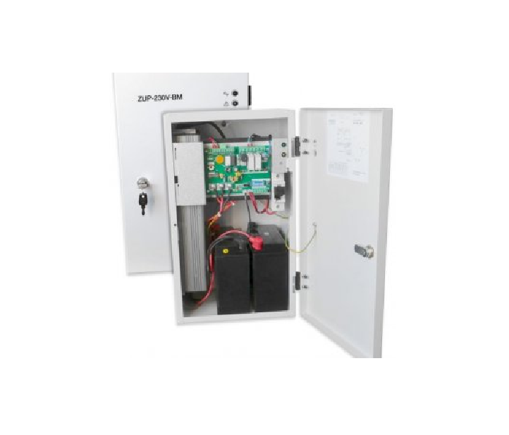 Sursa de alimentare pentru sisteme de detectie incendiu 230V/400W in cutie metalica, loc pentru 2 acumulatori. Sursele sunt certificate EN 54-4, Vds; EN 12101-10;